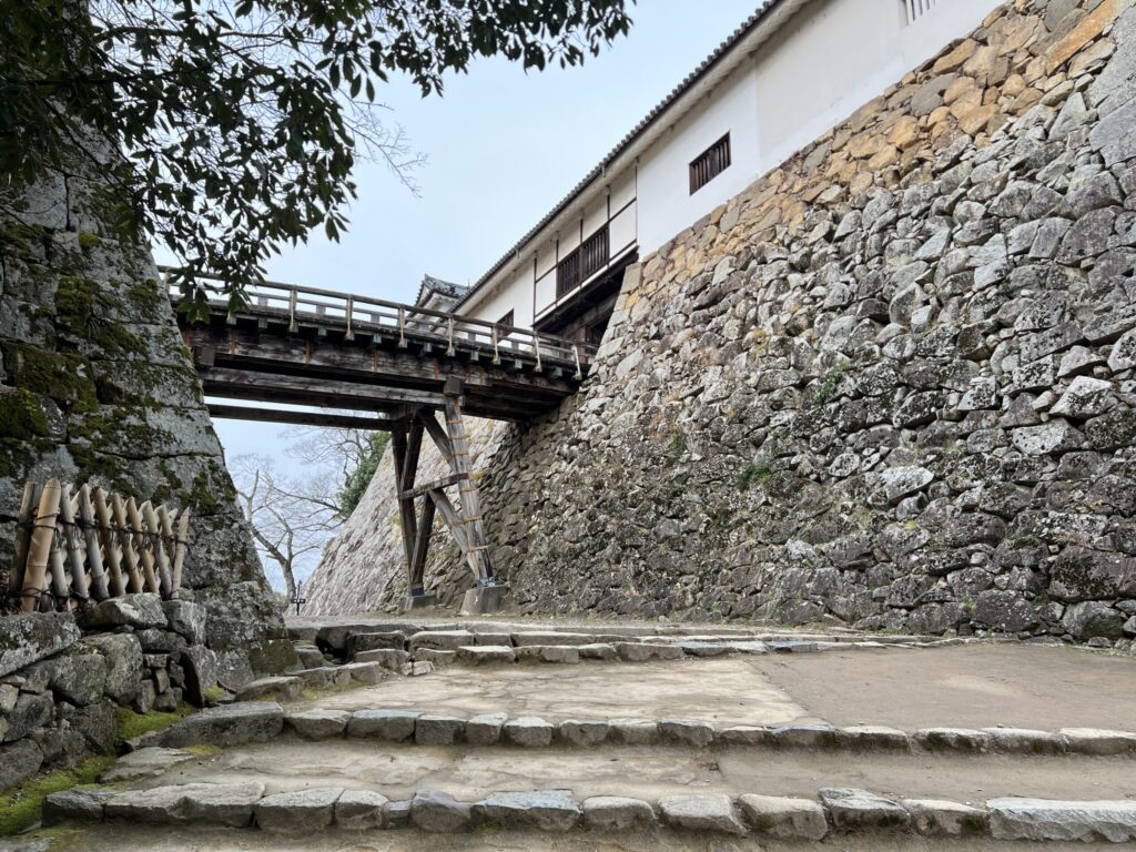 手前の「廊下橋」は、昔は屋根があったとのこと。もし敵が来たら橋を落として守るという、お城ならではの「守りの工夫」を想像しながら歩くと、一段と歴史の深さを感じました。
