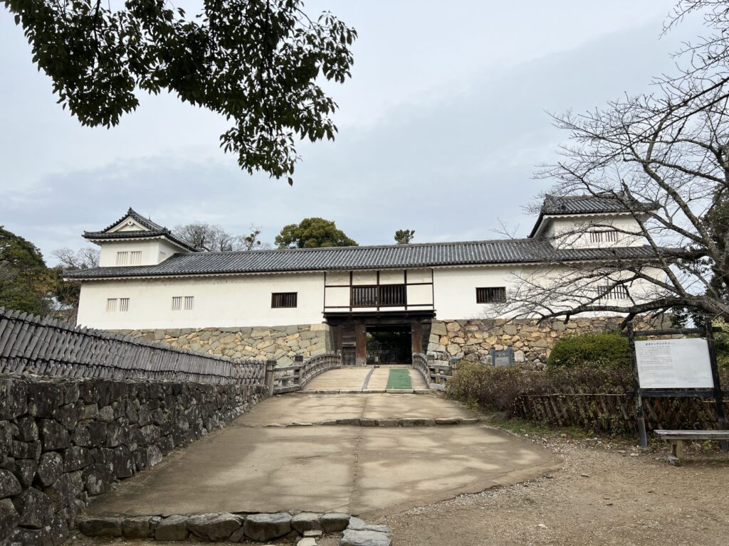 表門から坂道を登りきったところで目に飛び込んでくるのが、この「天秤櫓」です。 左右対称に広がる力強い姿は圧巻ですが、実はかつて長浜城から移築されたものという説もあるそうです。