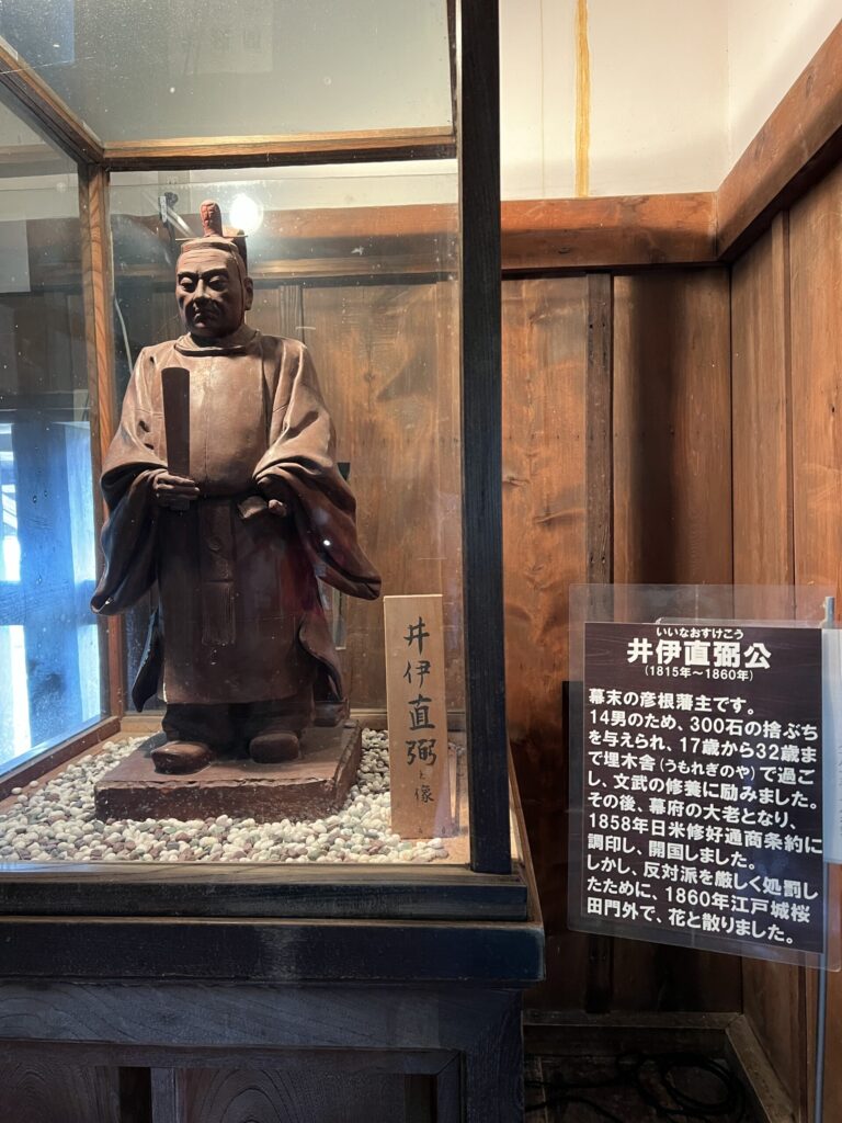 また、内部には幕末の大老として知られる第13代藩主・井伊直弼公の木像が安置されており、この地を治めた井伊家の歴史の深さを静かに物語っています。さらに、現代の来訪者のために窓からの景色を「インスタ映えスポット」として案内する遊び心も加わっており、古い歴史と現代の感性が交差する不思議な空間となっているのが印象的です。