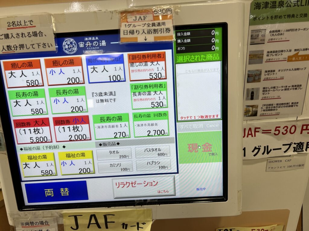 | 入浴料金 | 大人 580円 / 小人 200円(3歳〜12歳未満) |