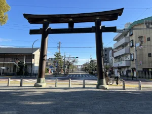 地下鉄、中村公園駅3番出口をでると高さ24mもある鳥居が姿を現します。鳥居をくぐり真っすぐ歩くと豊国神社があります。