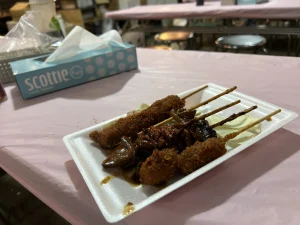 祭の屋台ということで、あまり味は期待していなかったが、これまた超美味しかった。寒い夜空、屋台の中で熱燗とドテ煮と串カツは最高のトリオだった。